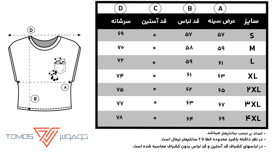 اندازههای درج شده در جدول سایز ممکن است ۱ الی ۳ سانتیمتر خطا داشته باشد.