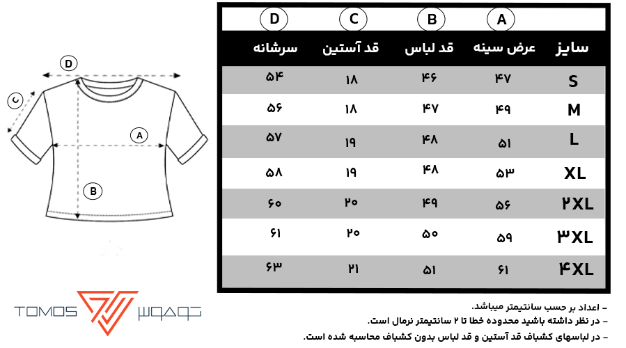اندازههای درج شده در جدول سایز ممکن است ۱ الی ۳ سانتیمتر خطا داشته باشد.